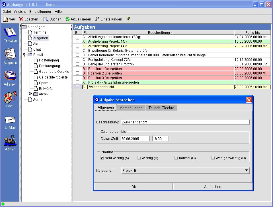Auch die Adressen können in 64 verschiedenen Kategorien unterteilt werden. Diese Kategorien können durch unterschiedliche Hintergrundfarben auch optisch leicht auseinandergehalten werden. Ferner ist es möglich einzelne Kategorien ein- bzw auszublenden.